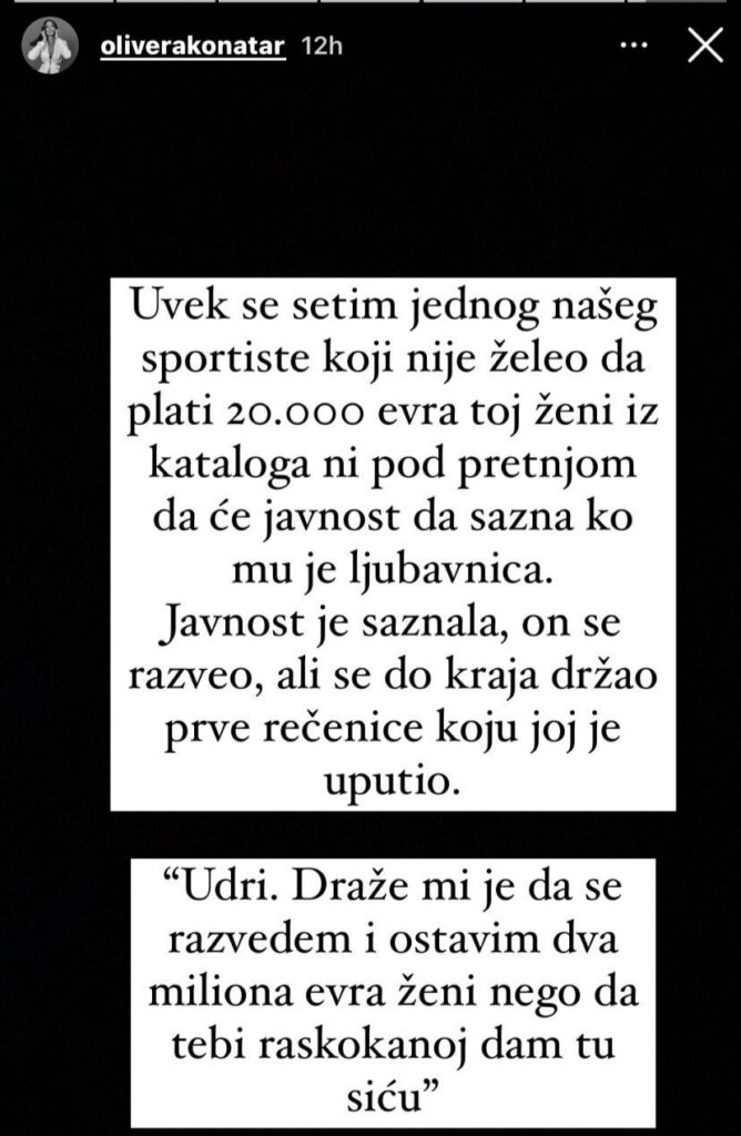 Bivša žena Vuka Moba, novinarka Olivera Konatar, na svom nalogu otkrila je šta se zapravo dešava u aferi fudbalske reprezentacije, oštrim jezikom, po kojem je i poznata, a pecnula je i neke žene fudbalera, kao i ženu iz kataloga.