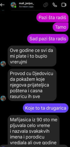 Naime, na jednom Instagram stanici isplivala je privatna prepiska Janjuša i nepoznate osobe u kojoj bivši košarkaš navodi da mu se Milena nabacuje napolju, ali da će ih sve uništiti u rijalitiju.