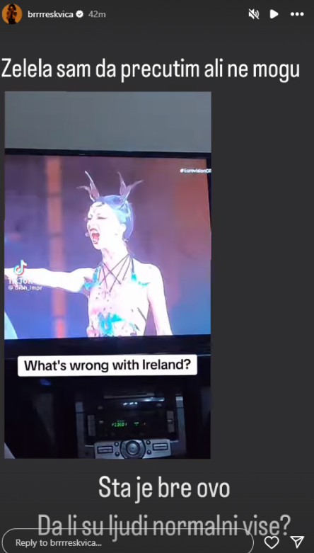 Anđela Ignjatović Breskvica juče je na Instagram profilu prokomentarisala ovogodišnju pesmu Irske na Evroviziji, koji je šokirao javnost zbog nastupa koji mnogi smatraju satanističkim.