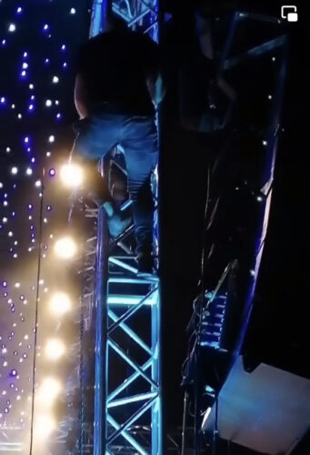 Na koncertu Dragane Mirković u Blacu odigrala se nesvakidašnja scena kada se mladić iz publike popeo na vrh konstrukcije bine.