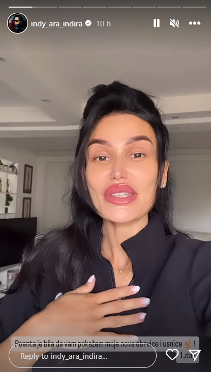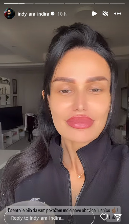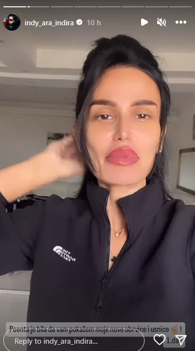 Pevačica Indira Indi Aradinović se pohvalila svojim novim usnama i obrvama putem društvenih mreža. Ona je podelila sa svojim pratiocima da je nedavno bila na korekcijama, i upitala ih kako im se sviđaju njen novi izgled obrva i usana.