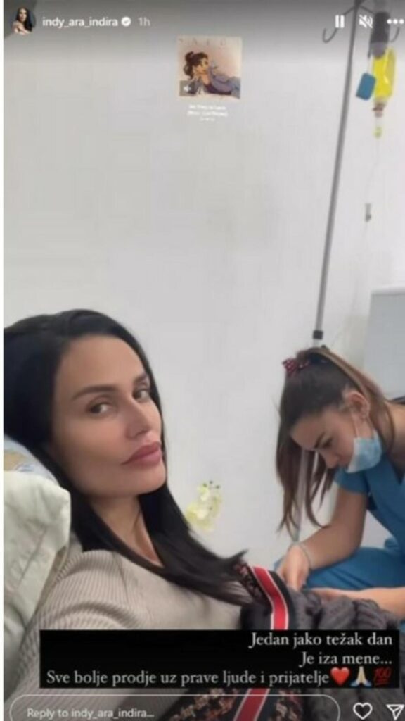 Naime, Indi je danas uznemirila pratioce fotografijom na kojoj se vidi medicinska sestra koja pevačici daje infuziju.