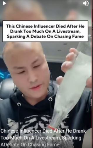 Tridesetčetvorogodišnji influenser Sankiange umro je nakon što je tokom prenosa uživo na kineskoj verziji TikToka popio više od četiri boce votke.