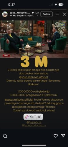 – 1.000.000 sati gledanja, 3.000.000 miliona pregleda. Intervju koji je oborio sve rejtinge i šerove na Balkanu.