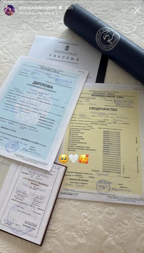Ona je na svom Instagram profilu objavila fotografije svojih diploma, svedočanstva i indeksa.
