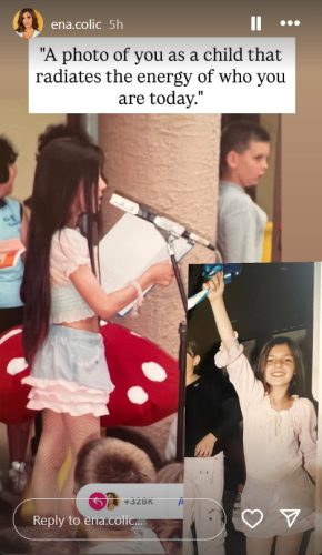 – Fotografija tebe kao deteta koja zrači energijom onoga što si danas – napisala je Ena i objavila fotografiju sa škloske priredbe, gde besedi za mikrofonom, ali i jednu gde se smeje.