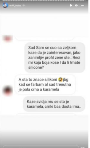 – Kaže sviđa mu se što je karamela, crnki baš dosta ima – napisao joj je Janjušević i nasmejao sve dopisivanjem.