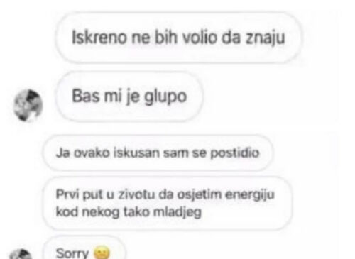 – Iskreno ne bih voleo da znaju. Baš mi je glupo. Ja ovako iskusan sam se postideo. Prvi put u životu da osetim energiju kod nekog tako mlađeg. Izvini – pisao je fudbaler.