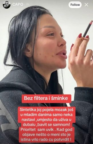 – Bez filtera i šminke. Sintetika joj pojela mozak još u mladim danima, samo neka nastavi. Umesto da uživa u Dubaiju, bavi se sa mnom. Prioritet sam uvek. Kad god objave nešto o meni što je istina vrlo rado ću potvrditi -napisao je Filip na svom tikok nalogu i šokirao sve.