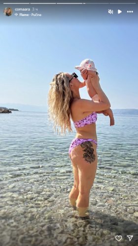 Ipak, objava koja je privukla najviše pažnje jeste ona gde pozira sa Barbarom u vodi. Milica se slikala sa strane, a svi su netremice gledali u njenu ogromnu tetovažu koja je išla od kuka, pa sve do pola butine.