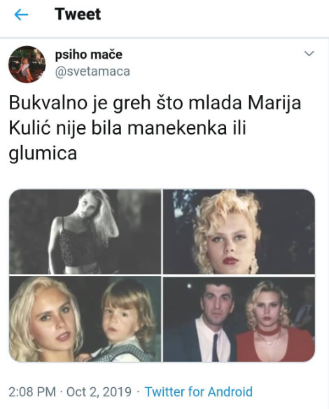 Ona je jednom prilikom na svom Instagram profilu objavila fotografiju iz mladosti na kojoj pozira sa mužem Sinišom Kulićem u kupaćem kostimu.
