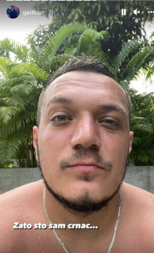– Zato što sam crnac – bio je opis na Instagram storiju po kojem je pevač hteo da skrene pažnju na svoj preplanuli ten. Pored toga poznati rijaliti učesnik nastavlja da objavljuje na dnevnom nivou sve događaje koje mu se dešavaju na ovoj prelepoj destinaciji.
