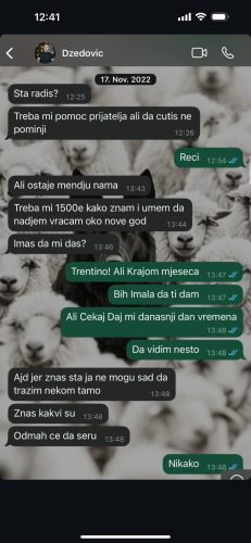 – Ali ostaje među nama. Treba mi 1500 evra, kako znam i umrem da nađem. Vraćam oko nove godine. Imaš da mi daš?
