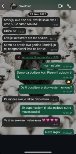 – Imam ne brini. Samo da dođem kući, pišem ti kad ti uplatim. Da ti pošaljem preko western uniona? – napisala je Ermina.
