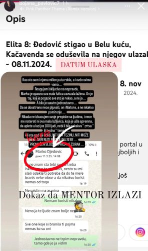 Naime, Bojana je na svom Instagram profilu objavila je prepiske između Đedovića i nepoznate osobe, koje jasno pokazuju da su napravljene 11.03.2025. godine, iako je on u rijaliti ušao 08.11.2024. godine.