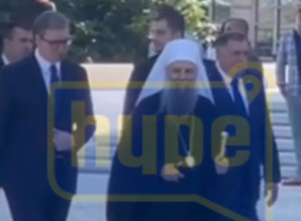 Pored njega na snimku prilaska srpskoj svetinji je i Ana Brnabić i patrijarh Porfirije.