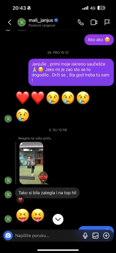 Iva nam je zatim priložila i dokaze u vidu prepiske, gde se tačno vidi kako joj se Janjuš udvara i lajkuje njene storije.