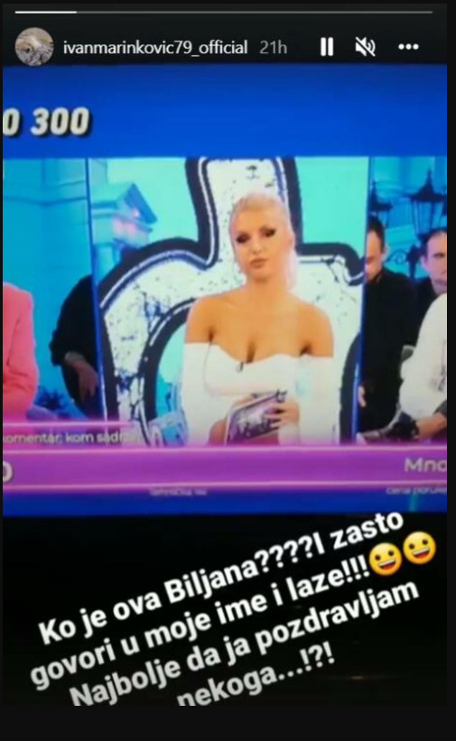 -Ko je ova Biljana?! I zašto govori u moje ime i laže?! Najbolje da ja pozdravljam nekoga – poručio je putem društvenih mreža Marinković.