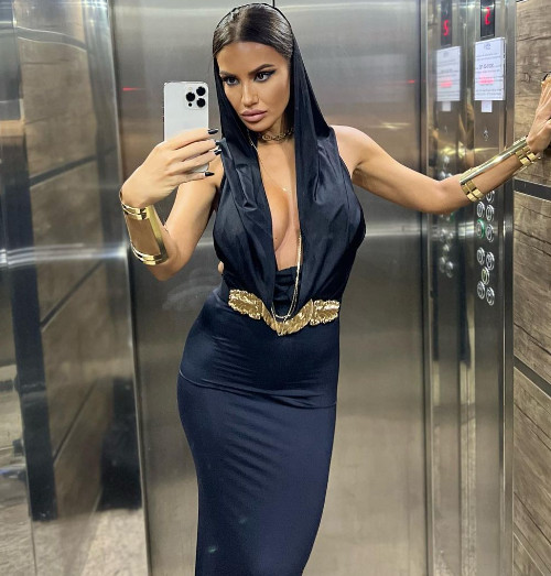 Ivana Stamenković Sindi se fotografisala u uskoj haljini koja ističe njenu figuru, a grudi su došle u prvi plan i izvajane obline.