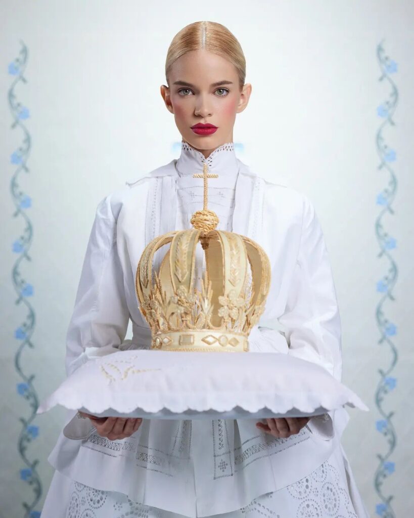Izložba Tron prikazuje i kako su stari hrišćanski simboli poput svetog grala, sunca, semena, krune, krsta, kolovrata, srca ili grlice, zapravo simboli ujedinjenja utkani u narodnu nošnju kao čuvari, ali i nosioci sreće, blagostanja i berićetnosti.