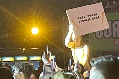 U publici se mogao videti i transparent: „Seks, droga, Sekulić Goga“.