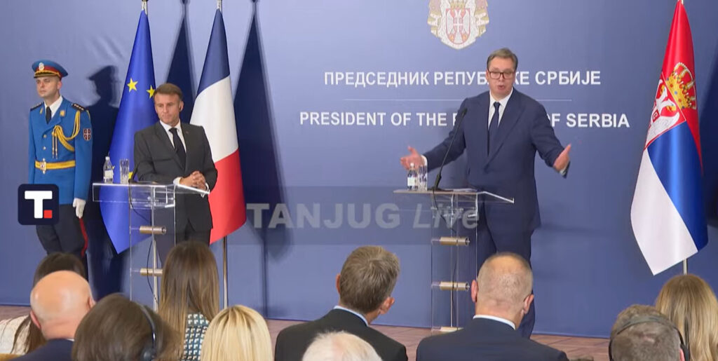 Predsednik Republike Srbije Aleksandar Vučić obratio se javnosti nakon sastanka sa predsednikom Francuske, Emanuelom Makronom