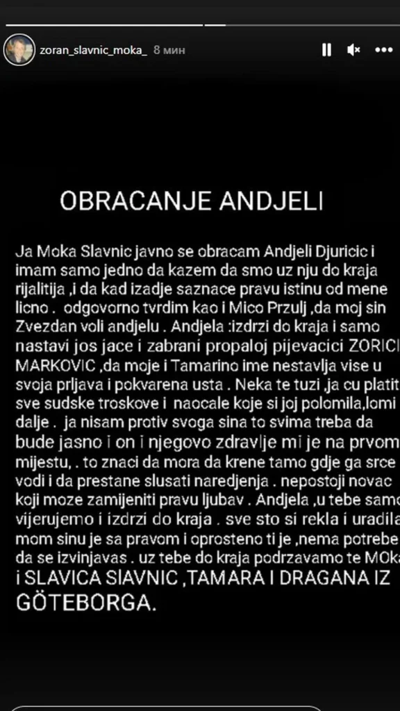 Ovim izjavama Moka Slavnić je dodatno podstakao kontroverze u javnosti, a mnogi su se zapitali da li je podrška koju pruža Anđeli deo taktike da se javnost malo odvrati od glavne teme, a to je prevara i prekidi u ljubavnom trouglu Zvezdana, Ane i Maje. Sve u svemu, ova ljubavna drama izazvala je veliku pažnju u javnosti, a ostaje da se vidi kako će se dalje razvijati situacija.