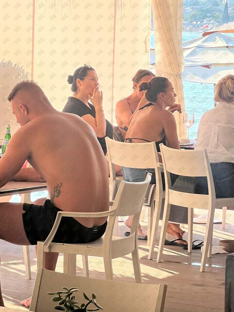 I to ne bi bilo ništa neobično, nego ono što nas je iznenadilo jeste da je pevačoica bila totalno neprepoznatljiva. Onako opušteno u crnoj majci koju je obukla preko kupaćeg kostima, bez šminke i sa opuštenom kosom koju je zakačila nehajno štipaljkom, sedela je u baru i ispijala kafu.