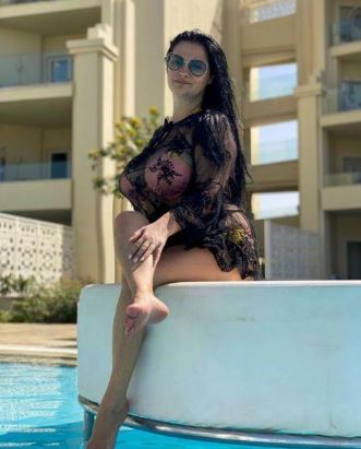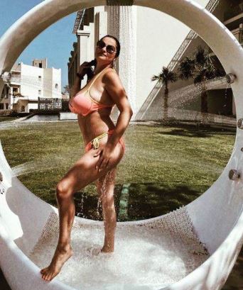 Ona je poznata po tome što nosi titulu najvećih prirodnih grudi na estradi, pa je i ovog puta pokazala svoje atribute, a kupaći kostim je savršeno istakao njene obline.