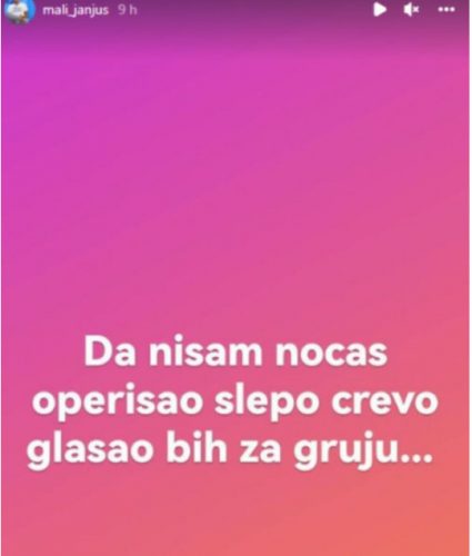Janjuš je objavio stori u kom je objasnio da je prošle noći, tokom spektakularne Zadrugovizije završio u bolnici, te da je morao hitno na operaciju slepog creva.