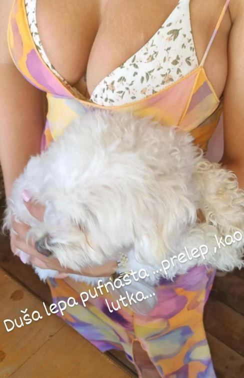 Osim idiličnog prizora, podelio je i fotografiju ženske osobe, veoma bujnog poprsja, koja je držala psa u rukama.