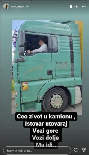 – Ceo život u kamionu, istovar, utovaraj, vozi gore, vozi dole, ma idi…- napisao je Janjuš u opisu fotografije.