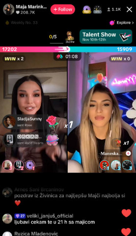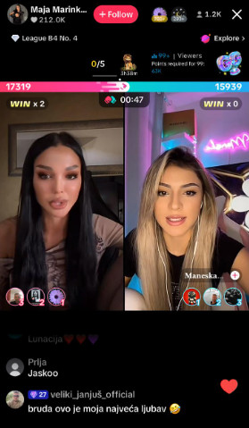 -Ljubavi, čekam te u 21h sa majicom – poručio je Janjuš Maji, na šta se ona nasmejala, te nastavila da snima lajv sa korisnicom Tiktoka.