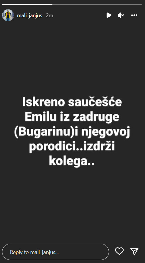 – Iskreno saučešće Emilu iz Zadruge (Bugarinu) i njegovoj porodici..izdrži kolega.. – poručio je Janjuš Emilu na svojoj društvenoj mreži.
