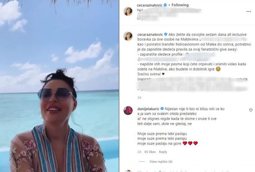 Pevačica Danijela Karić prijavila se za nagradnu igru na profilu Cece Ražnatović u kojoj je nagrada putovanje na Maldive.