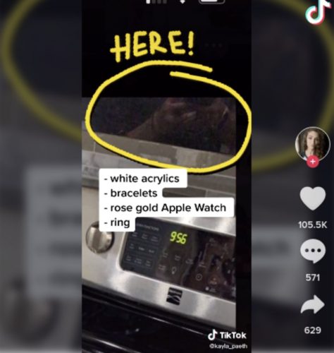 Naime, iznad ploče za kuvanje nalazi se crni deo šporeta u kom se video odraz žene koja drži mobilni. Kajla je primietila da nosi sat, narukvice i prsten.