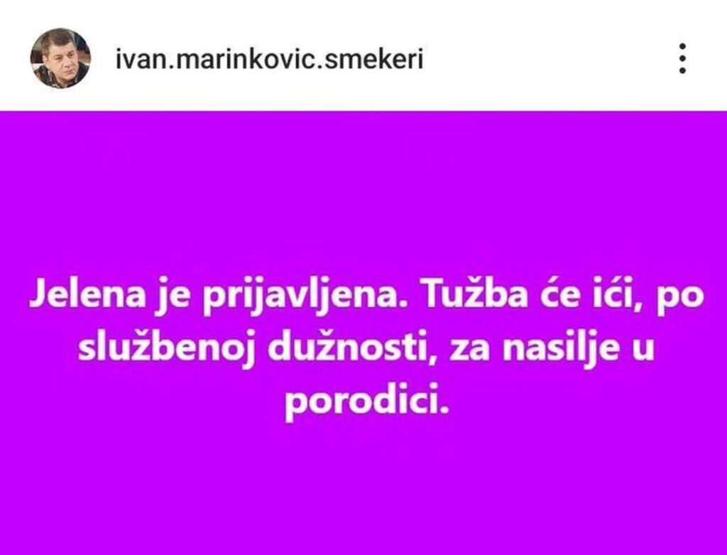 “Jelena je prijavljena. Tužba će ići, po službenoj dužnosti. Za nasilje u porodici.” glasila je objava na mrežama.