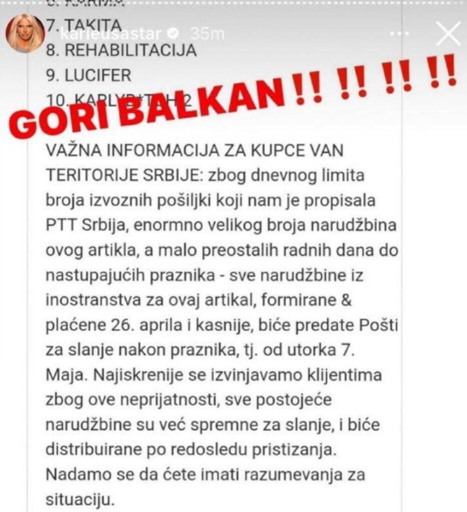 Zbog velike potražnje, unapred se izvinila svima koji su poručili diskove ako pošiljka kasni, jer nam slede praznici, a kurirska služba će imati drugačije radno vreme nego inače.