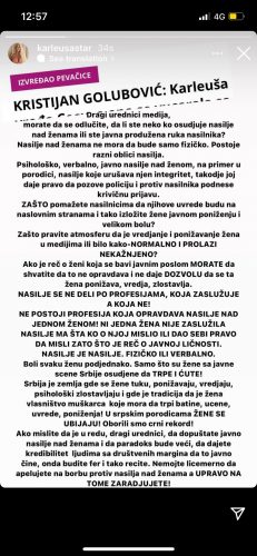 -Psihološko, verbalno, javno nasilje nad ženom, na primer u porodici, nasilje koje urušava njen integritet, takodje joj daje pravo da pozove policiju i protiv nasilnika podnese. Zašto pomažete nasilnicima da njihove uvrede budu na naslovnim stranama i tako izložite žene javnom poniženju i velikom bolu? – napisala je Jelena.
