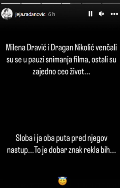 – Milena Dravić i Dragan Nikolić venčali su se u pauzi snimanja filma, ostali su zajedno ceo život…Sloba i ja oba puta pred njegov nastup… To je dobar znak rekla bih – napisala je Jelena na svom storiju na Instagramu i pokrenula lavinu brutalnih komentara.