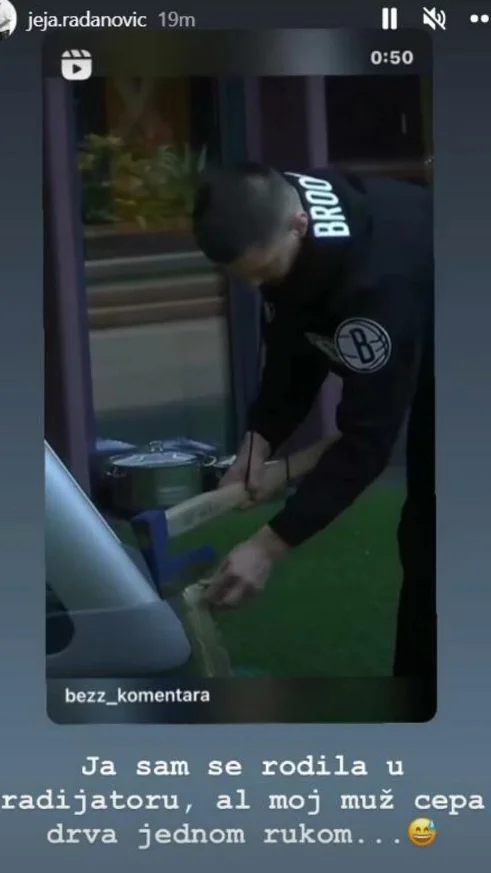 – Ja sam se rodila u radijatoru, al’ moj muž cepa drva jednom rukom – napisala je Radanovićeva na Instagramu.