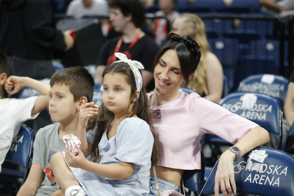 Supruga bivšeg kapitena košarkaške reprezentacije Srbije Jelisaveta Orašanin, ćerka Petra i sin Bogdan došli su da bodre Miloša.