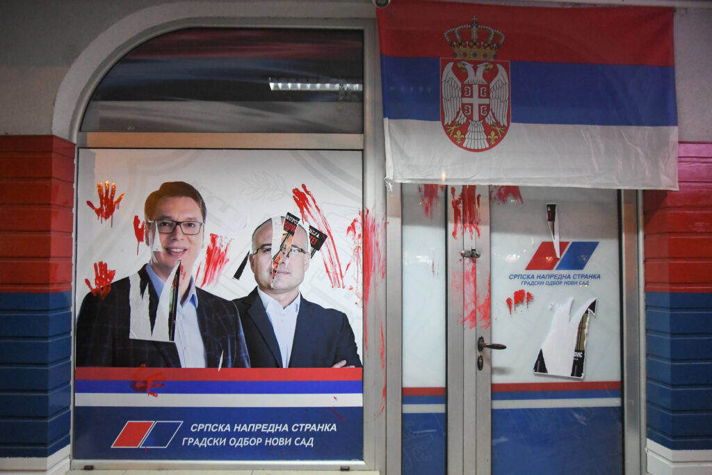 Najpre su oni zasipali kamenicama, suzavcima, fekalijama i farbom gradsku kuću, koja je kulturno-istorijsko dobro,  i to sve na čelu sa Mišom Bačulovim, koji je takođe priveden. Da bi onda, da kažemo – „briljirao“ od ranije poznati nasilnik Goran Ješić.