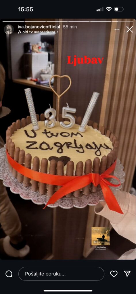 Osim iznenađenja, ona je njemu spremila i tortu, sa dva velika broja 35 i prskalicama, a na njoj je pisalo „U tvom zagrljaju“.