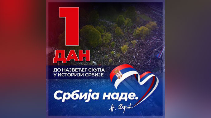 Do velikog narodnog skupa, nazvanog „Srbija nade”, ostao je još jedan dan.