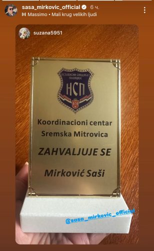 Još jedna zahvalnost i priznanje u nizu! SAŠA MIRKOVIĆ NASTAVLJA DA INSPIRIŠE I DOPRINOSI OČUVANJU I AFIRMACIJI DRUŠTVENIH VREDNOSTI!