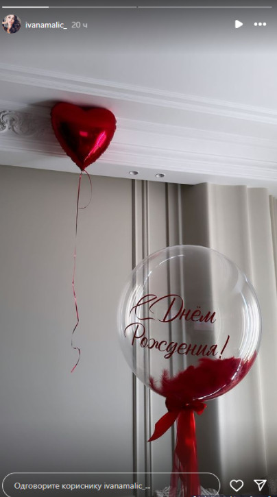 Miloš je svojoj partnerki tom prilikom priredio iznenađenje, a Ivana je sve to podelila sa pratiocima na Instagramu. Glumac joj je kupio crveni balon u obliku srca, kao i jedan u kom se nalazila pera crvene boje i na kom na ruskom piše „Srećan rođendan!“