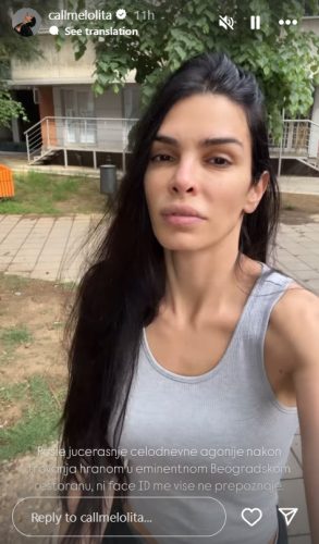 – Posle jučerašnje celodnevne agonije nakon trovanja hranom u eminentnom restoranu u Brogradu, ni „face ID“ me više ne prepoznaje – rekla je manekenka aludirajući na to da ne može da otključa telefon sistemom prepoznavanja lica, a onda je otkrila i na koju hranu sumnja da joj je izazvala trovanje.