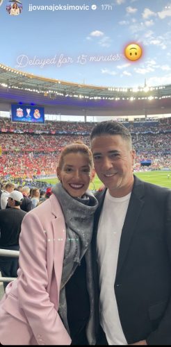 U glavnom gradu Francuske se trenutno održava Finale Lige Šampiona ,a voditeljka Jovana Joksimović i njen suprug Željko imali su tu privilegiju da jedan od najvećih sportskih događaja gledaju uživo sa tribina, o čemu je voditeljka obavestila svoje pratioce objavom na Instagramu.Iako je utakmica kasnila i početak utakmice je tri puta pomeren, to bračnom paru Joksimović očigledno nije smetalo da se dobro provedu.