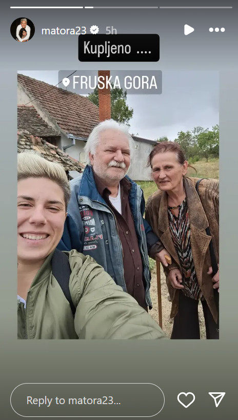 Čini se da je kupila plac na Fruškoj Gori, čime se pohvalila u sklopu storija.